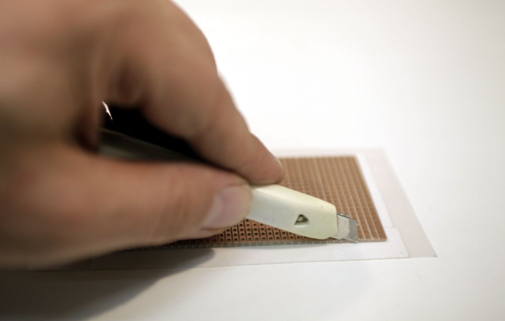 - Mark your protoboard, 1/2, 1/3, 1/6 or what ever you need later. And cut the coper side with a cutter.